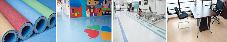 PVC floor leather is mainly composed of wear resistant layer, pattern layer, PVC layer, reinforced layer, etc.. PVC floor leather has wear resistance, corrosion resistance, anti-slip, anti-seepage, flame retardant properties .Products is mainly used for hospitals, airports, schools, office places, cars, trains and other occasions.