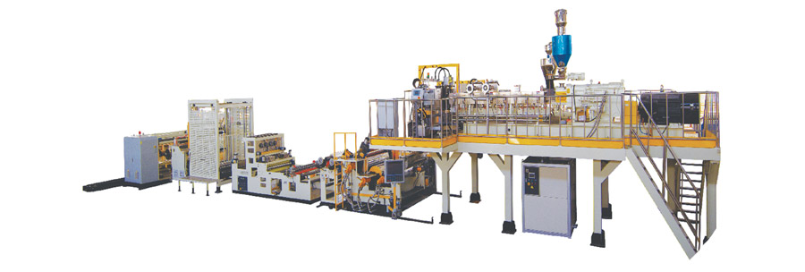 Pre-crystallization drying type extrusion line mainly consists of pre-crystallization drying system(energy saving type),extrusion system,forming system,finished product collection system;The crystal free drying type extrusion line mainly consists of extruding system(vacuum exhaust type),forming system,finished product winding system.